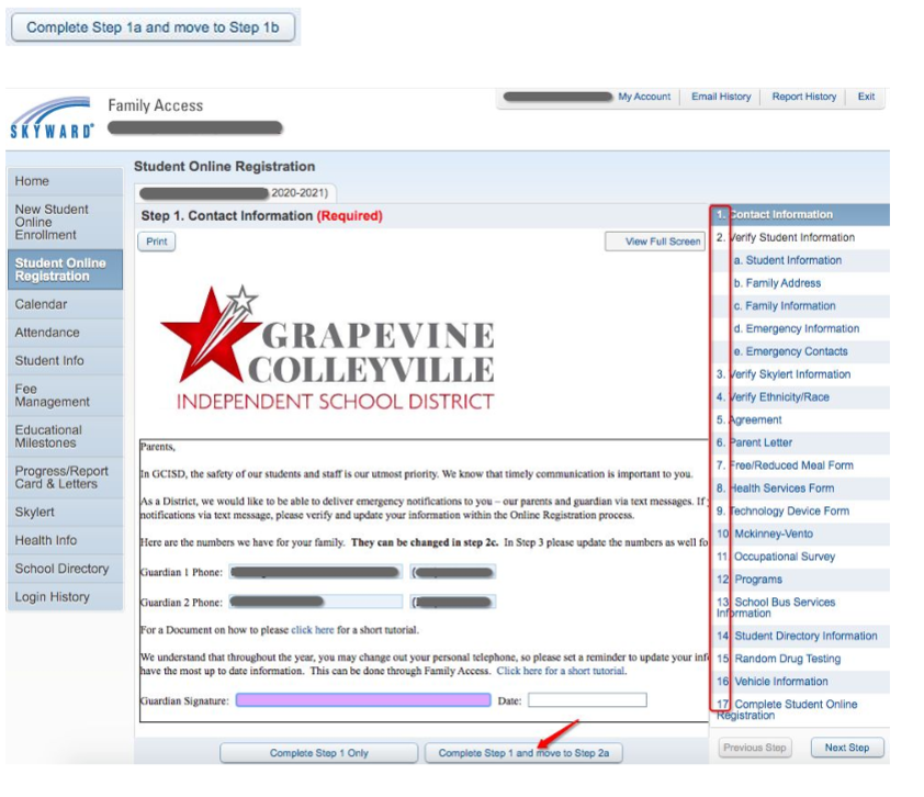 This includes students who are transitioning from one campus to another- such as elementary to middle school. Online registration must be completed for each new/returning student in the district prior to the start of the new school year. The registration process allows you to verify that the information we have on file is accurate. Parents and guardians in the student's primary family will have access to online registration. The student's primary family is the one in which the student primarily resides and to whom the student's residency address was assigned. Secondary families and parent/guardians in those families can still use Family Access but can not complete the online registration process. If you have any questions you can check the GCISD Registration website to see more information on registration.